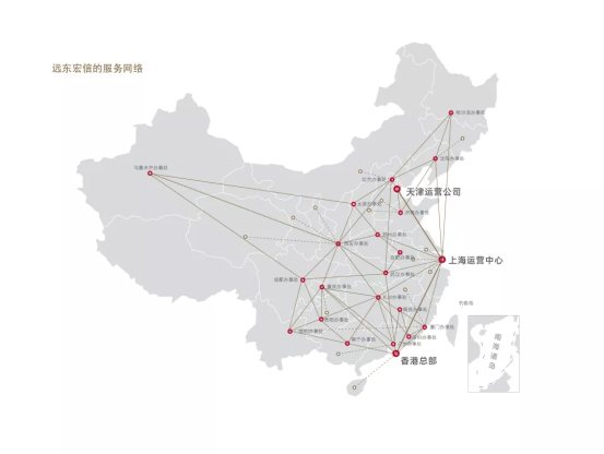 从2005年开设长沙办事处起,远东宏信始终坚持稳扎稳打、深耕区域、贴地经营,以每年开设1至2家办事处的速度,如今已然形成了全国性布局。当前,远东宏信已经形成了以香港为总部,上海和天津为运营中心,在全国19个省市、设有20个办事处的部署格局。