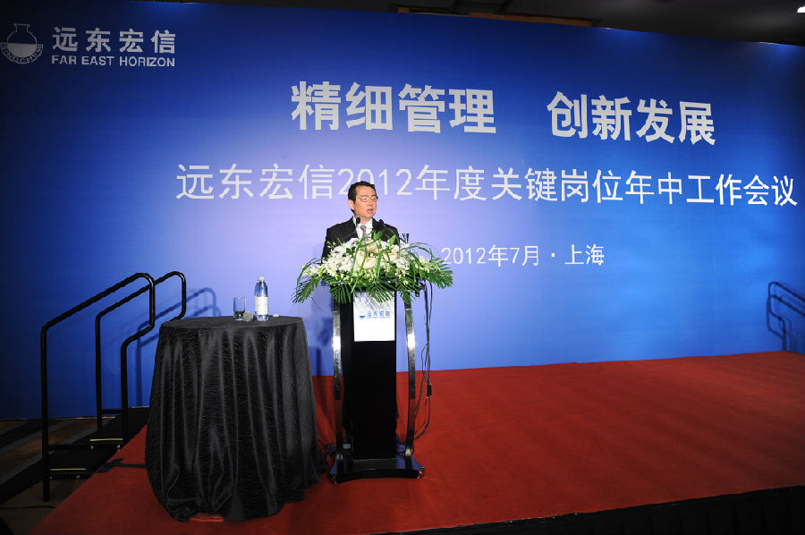 2012年7月12日,远东宏信2012年度关键岗位年中工作会议在上海世博洲际酒店隆重召开。远东宏信领导班子、核心管理岗位管理者及办事处主任、党支部书记出席会议,会议由高级副总裁牛卫东主持。