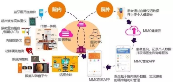 中心成立后,患者将在深圳中海医院实现院内全程高效诊疗,院外患者全方位管理。当患者进入MMC后,可在一个诊室完成血压、血糖、血脂等多种检测,经医生确认后付费取药,在院外,患者可以通过移动终端自主上传检测数据,记录个人病情,查看个人报告,及时获得医生动态指导。