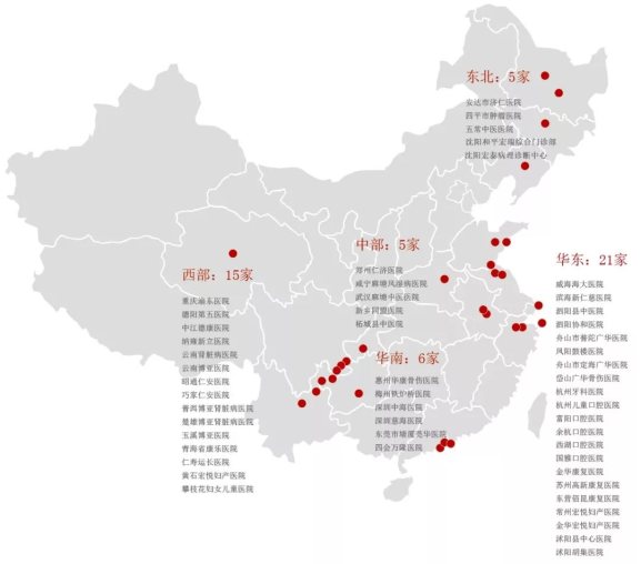 远东将旗下医院主要布局聚焦于三四线城市及以下的广大地区,经过多年发展,已经打造出一个涵盖近50家成员机构的大型医院集团。