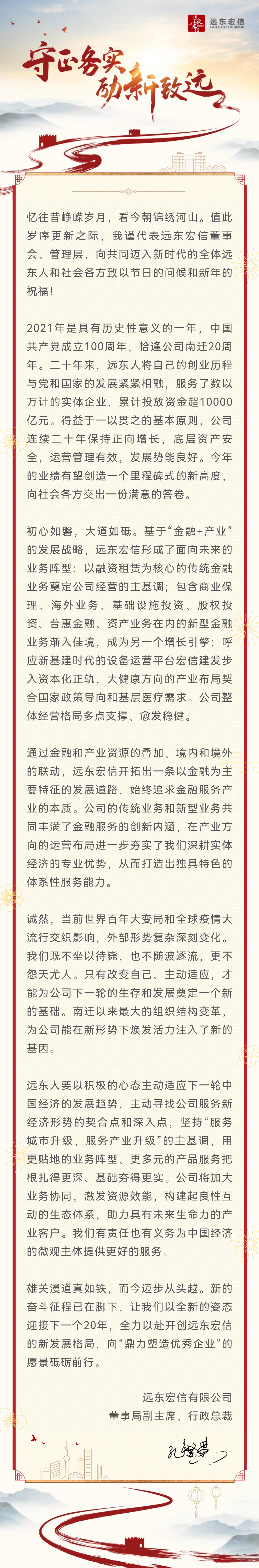 远东宏信总裁2022年新年献词