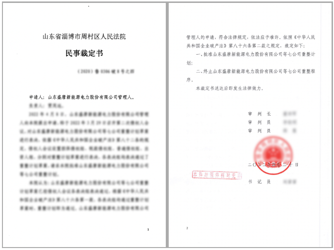 △ 山东盛唐项目重整计划法院裁定书