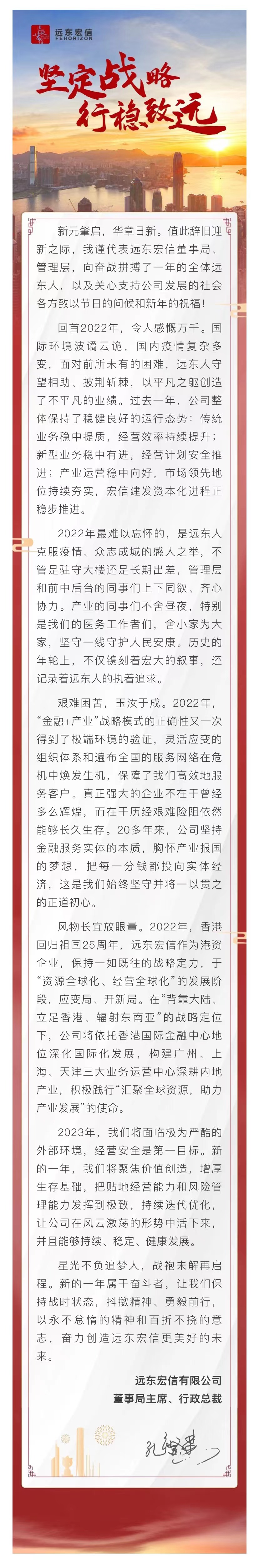 远东宏信总裁2023年新年献词——坚定战略,行稳致远