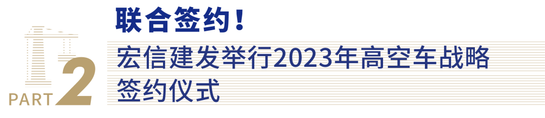 2月3日,远东宏信旗下设备综合运营服务商宏信建发在上海举行2023年高空车战略签约仪式,这是宏信建发首次与国产高空车制造行业合作伙伴联合举行战略签约。宏信建发总经理潘阳、财务总监唐立、总经理助理李明,徐工消防副总经理苏坤,中联高机副总经理杨艾华,临工重机总经理万厚福、总经理助理傅志国,浙江鼎力国内销售总监向存云等齐聚远东宏信广场,共同展望2023年高空车市场合作前景,合力助推中国工程设备全产业发展迈向新高度。