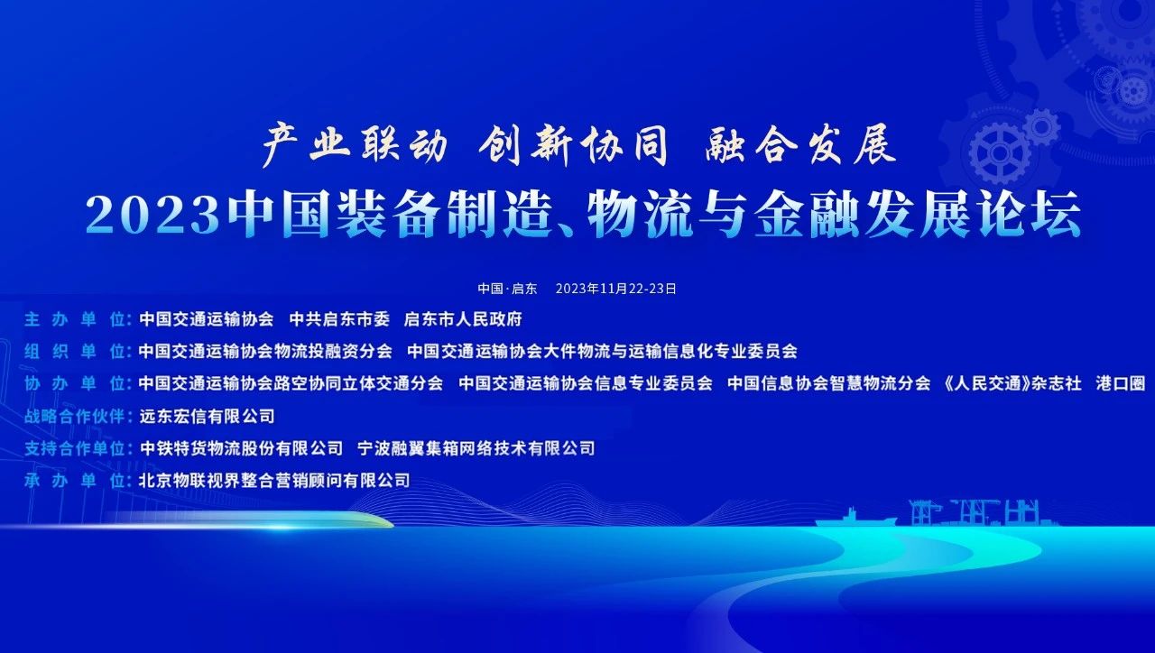 11月22日,“2023中国装备制造、物流与金融发展论坛”在江苏启东市成功举办,远东宏信作为本次论坛战略合作伙伴受邀出席并作主旨演讲。